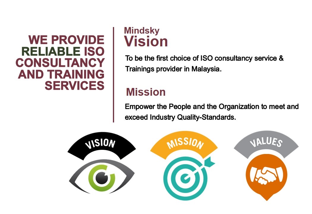 To be the first choice of ISO consultancy service & Trainings provider in Malaysia.